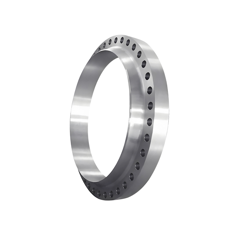 带颈对焊法兰通常采用锻造工艺生产,如模锻,将加热后的坯料放置在固定于模锻设备上的锻模内锻造成形,经过下料、加热、预锻、终锻、冲连皮、切边、调质、喷丸等工序,锻造出的法兰晶体组织细密,强度高。
